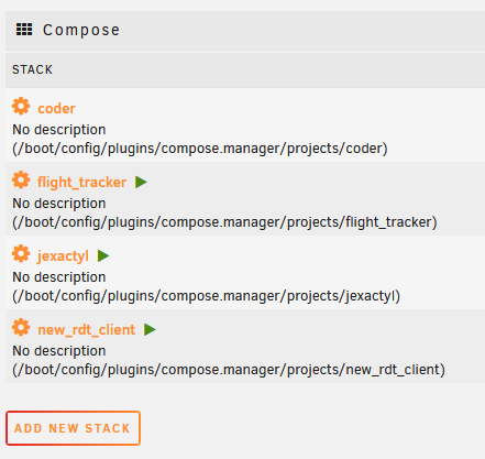 Navigate to the bottom of the Docker page in Unraid and click the “Add New Stack” button. Enter a name for the stack and press OK.
